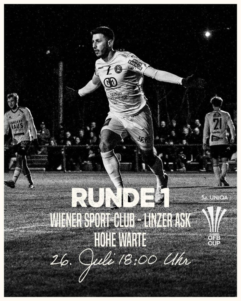 Der Wiener Sport-Club empfängt in der ersten Runde des Uniqa ÖFB Cups den Bundesligisten LASK. Da wir das Heimrecht besitzen, unser Trainingszentrum in der Erdbrustgasse aber den Richtlinien des ÖFB für ein Cupmatch nicht entspricht, waren wir gezwungen uns nach Alternativen umzusehen und sind auf der Hohen Warte fündig geworden. Das Spiel selbst wird am Samstag, 26. Juli, um 18 Uhr stattfinden. Wer es nicht nach Döbling schaffen sollte, kann das Spiel live auf ORF1 verfolgen. Das Aufeinandertreffen der beiden Schwarz-Weißen Vereine ist nämlich das ORF Topspiel am Samstag. Ticketinfos folgen demnächst.